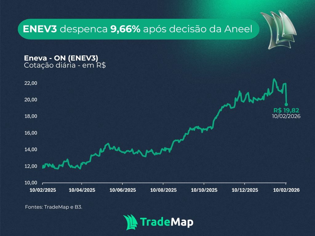 As ações da Eneva (ENEV3) derreteram 9,66% no pregão desta terça-feira (10), registrando a maior queda intradiária em quase seis anos e provocando uma perda de R$ 4,1 bilhões em valor de mercado. O forte movimento negativo refletiu a frustração dos investidores com a decisão da Agência Nacional de Energia Elétrica (Aneel) sobre os preços-teto do principal leilão do setor elétrico, marcado para março e visto até então como um dos principais catalisadores para a companhia.