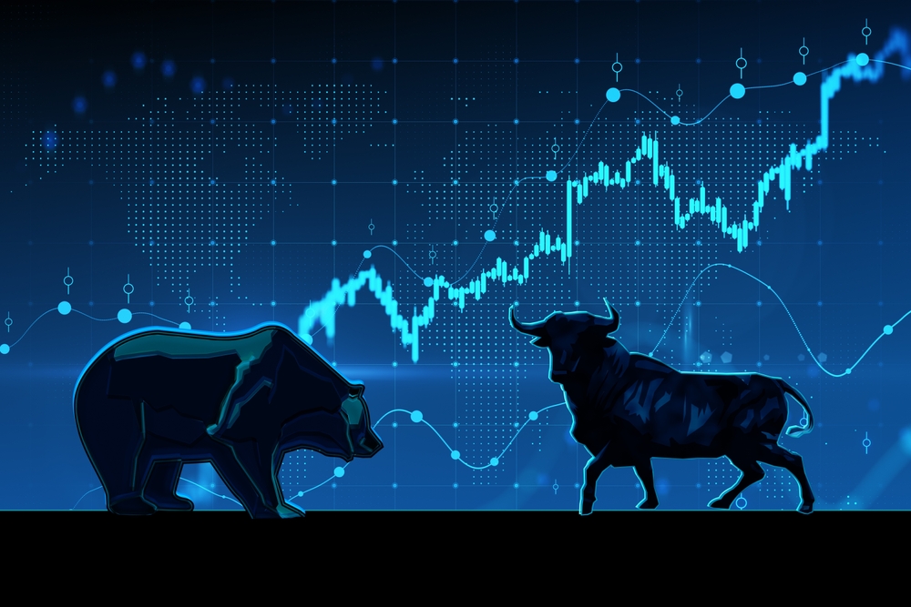 Creative,Abstract,Bearish,And,Bullish,Forex,Chart,On,Blurry,Backdrop.