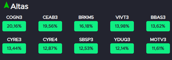 Nesse contexto de forte avanço do índice, algumas ações se destacaram entre as maiores altas, impulsionadas por revisões de recomendação, expectativas de resultados e anúncios corporativos, enquanto outros papéis registraram quedas pontuais, refletindo ajustes técnicos e cautela dos investidores diante de fundamentos específicos.