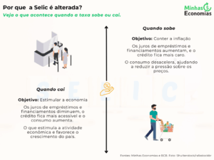 Quando a Selic sobe, os juros cobrados em empréstimos, financiamentos e cartões de crédito aumentam, o que desestimula o consumo e ajuda a conter a inflação.