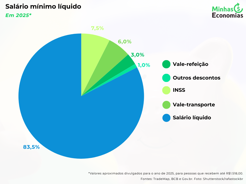 O salário mínimo líquido atual (2025), após os descontos obrigatórios e usuais, pode ficar abaixo de R$ 1.400,00, o que compromete significativamente o orçamento dos trabalhadores de baixa renda. Pequenos reajustes nesse valor têm impacto direto na vida financeira e social dessa parcela da população, influenciando desde o consumo básico até o acesso a serviços essenciais. Por isso, a manutenção e a valorização real do salário mínimo são medidas fundamentais para reduzir desigualdades e assegurar condições mínimas de dignidade à maioria dos brasileiros que dependem exclusivamente dessa renda.
